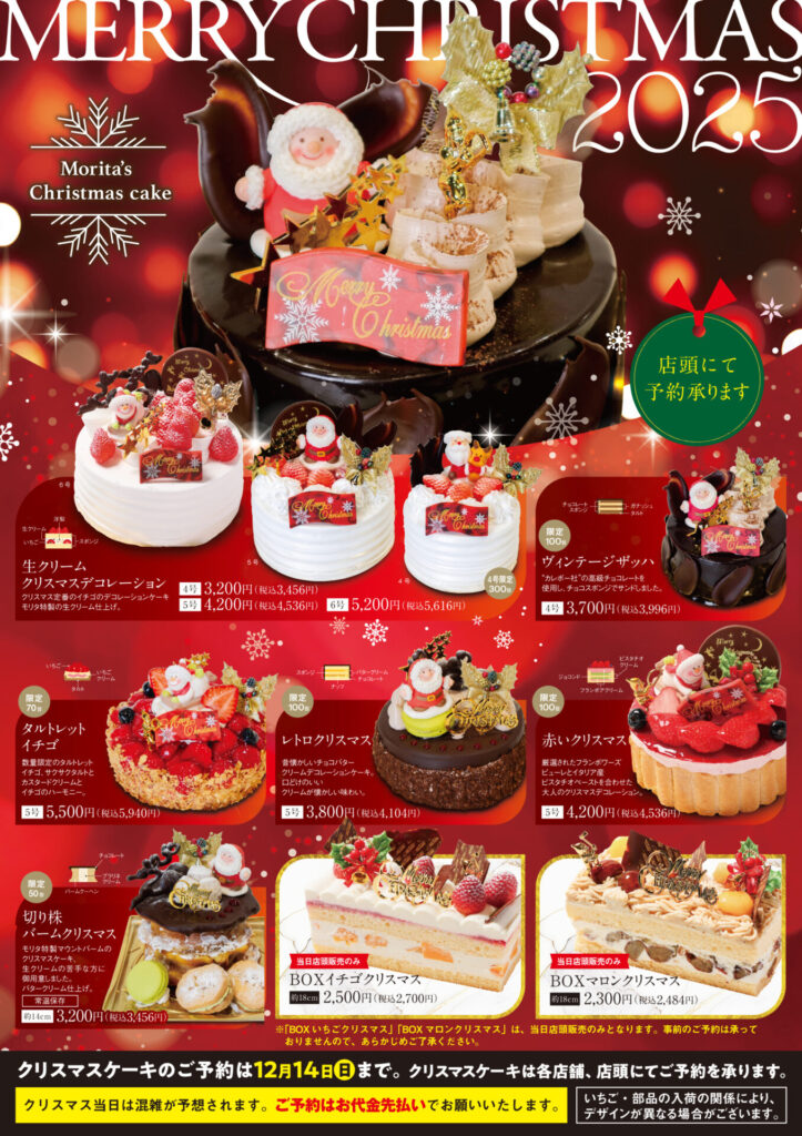 今年もパティスリーモリタでは、心あたたまるクリスマスを彩る特別なケーキをご用意いたしました。
